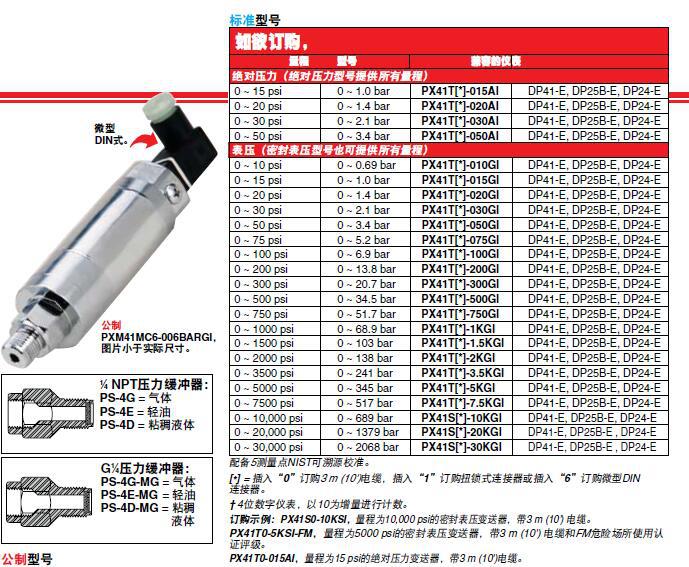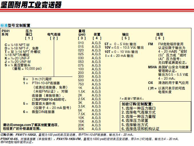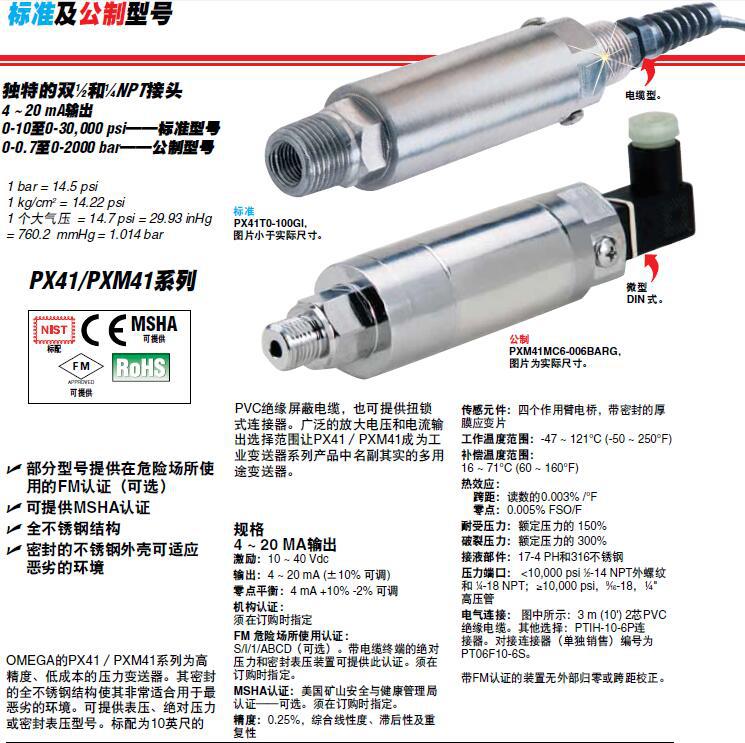 PX41T0-015AI/PX41T0-020AI/PX41T0-050AI压力变送器OMEGA欧米茄