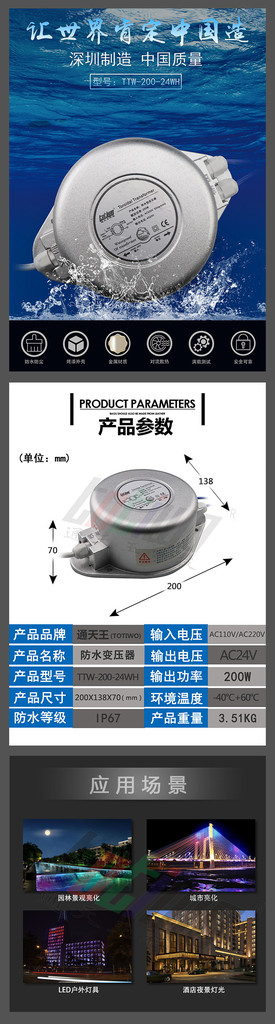 AC220V转AC24V200W电子低频户外防水环形变压器 200VA环型电源变压器 LED数码管护栏管专用