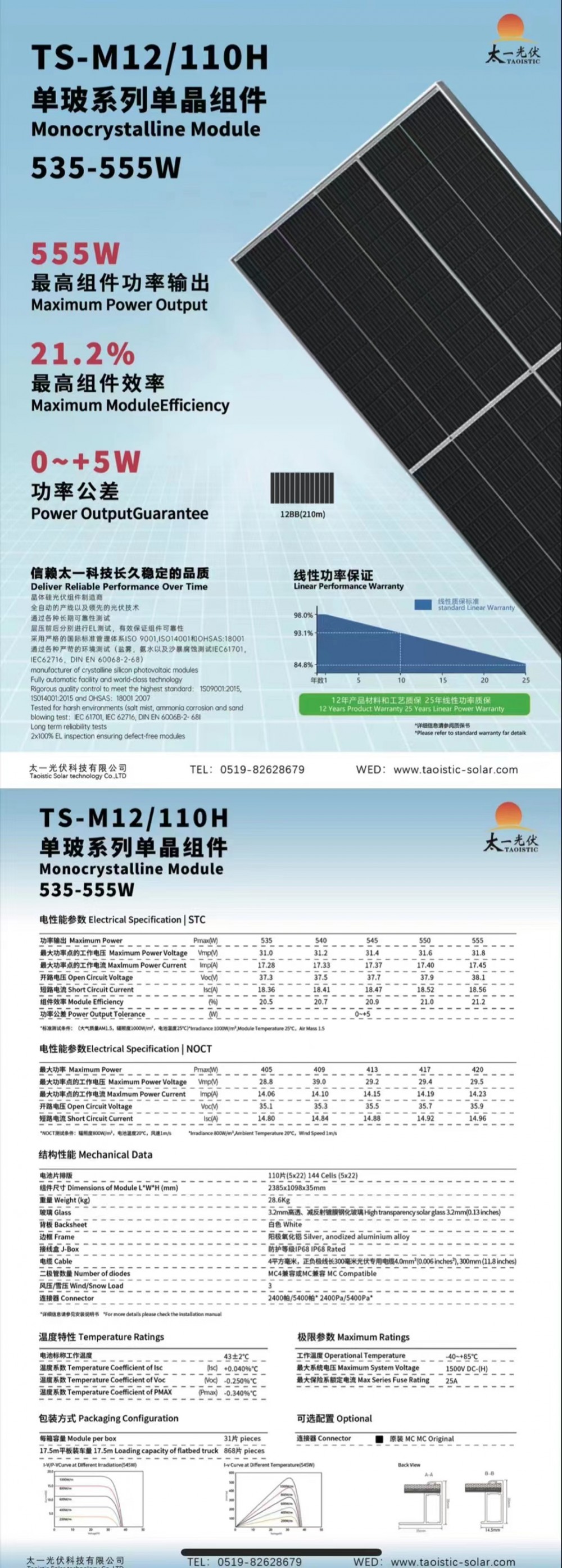 535-555W尺寸:2385*1098*35mm