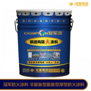 江苏冠军科技集团股份有限公司主要生产冠军防火涂料,鲸海防火涂料,冠军膨胀型防火涂料,鲸海膨胀型防火涂料,冠军非膨胀型防火涂料,鲸海非膨胀型防火涂料,冠军厚型防火涂料,鲸海厚型防火涂料,冠军薄型防火涂料,鲸海薄型防火涂料,冠军超薄型钢结构防火涂料,鲸海超薄型钢结构防火涂料。环氧富锌底漆,环氧云铁中间漆,聚氨酯面漆,环氧煤沥青漆等工业防腐油漆和防火涂料。