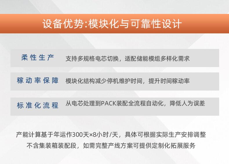 设备兼容性强:支持多种主流电芯规格及模组设计,便于客户产品多样化。