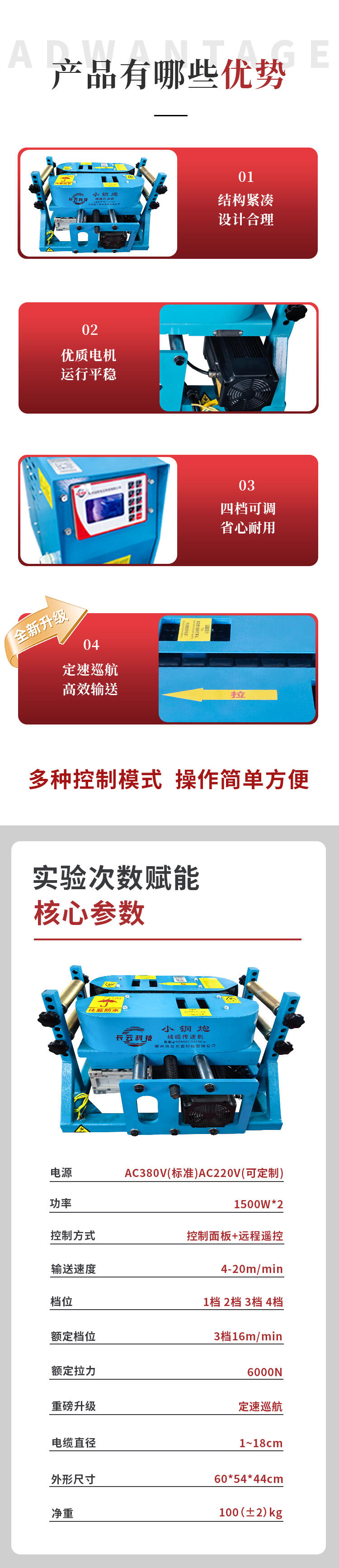 电缆敷设工具,长云小钢炮电缆输送机,桥架狭小区域可用